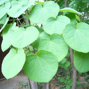 コメント  写真の花は雌花ですが、花らしい花ではないですね。かわいいハート型の葉っぱと秋の黄葉がよろしいです。夏には涼しげな木陰を作ってくれます。