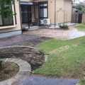 | アピールポイント | ランダムストーン、ヨーロピアンファン、ビンテージウッドと 3種類のマットスタンプをしました。 最後の写真にあるように最初は芝生広場でしたが、草が多くなってきたのと 除草の苦労からの解放を求めてイメージチェンジしました。 そこではバーベキュウをしたり、菜園や花壇への通路として使う予定です。 元々の砂場は黒土と入れ替え、今ではブルーベリーが植わっている果樹園です。 楽しく生活して頂ければ幸いです。 |