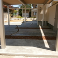 | アピールポイント | 新築に伴い、アプローチやカーポートを整備しました。 アプローチは左右どちらからでも入れるようになっていて、どうぞウエルカムっていう雰囲気です。ウオールの後のバラは移植したものですが、元気に育っています。ブルーベリー共々大きく成長してほしいです。 カーポートのスリットと砂利はお客さん自らの提案で、形や色はとても感じが良いですね。 何も無い着工前と比べると、家がとても引き立っていますね!楽しくしあわせな家庭を築いてください。 |